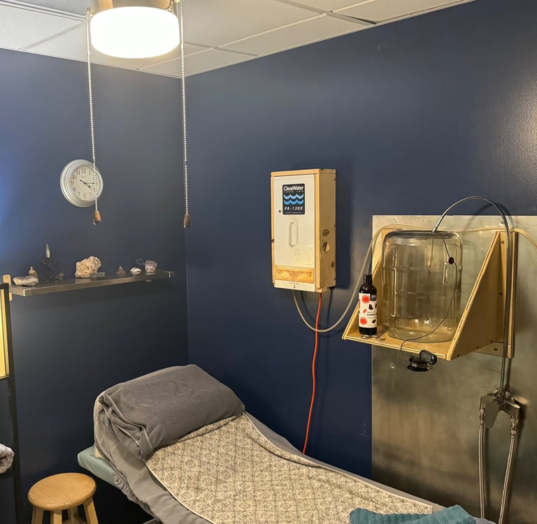 Similar to a liquid enema, this type of colon therapy involves the slow introduction of large amounts of gravity fed water into the colon. We have a specialized system so there are no plastics, metals or other toxins that could leeched out of the system and into you. This specialization makes our colon hydrotherapy a one-of-a-kind, truly clean, toxic free system. We use pharmaceutical grade water, organic black coffee, and ozone in all of our colonics. Our pharmaceutical grade water goes through a 7-stage filtration system, 2 UV filters, and magnetic structuring. After the colon hydrotherapy session, you will receive a custom suppository for application at home before bed to assist in reestablishing a healthy microbiome.
